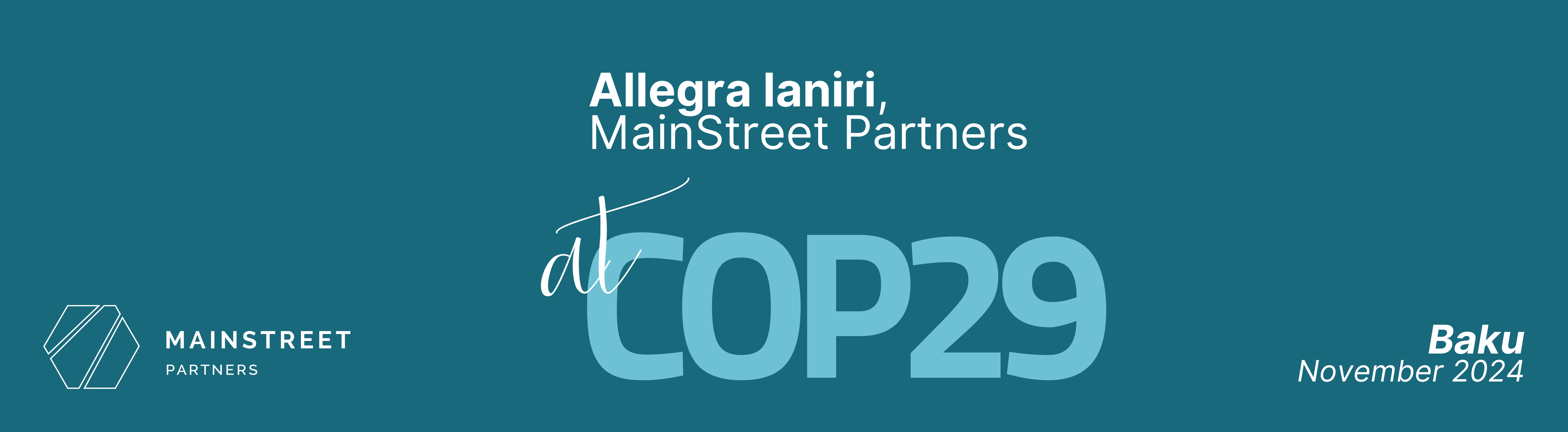 MainStreet Partners is excited to share a firsthand look at COP29 in Baku, Azerbaijan, where Allegra Ianiri is on the ground capturing the latest discussions and developments in global climate policy.