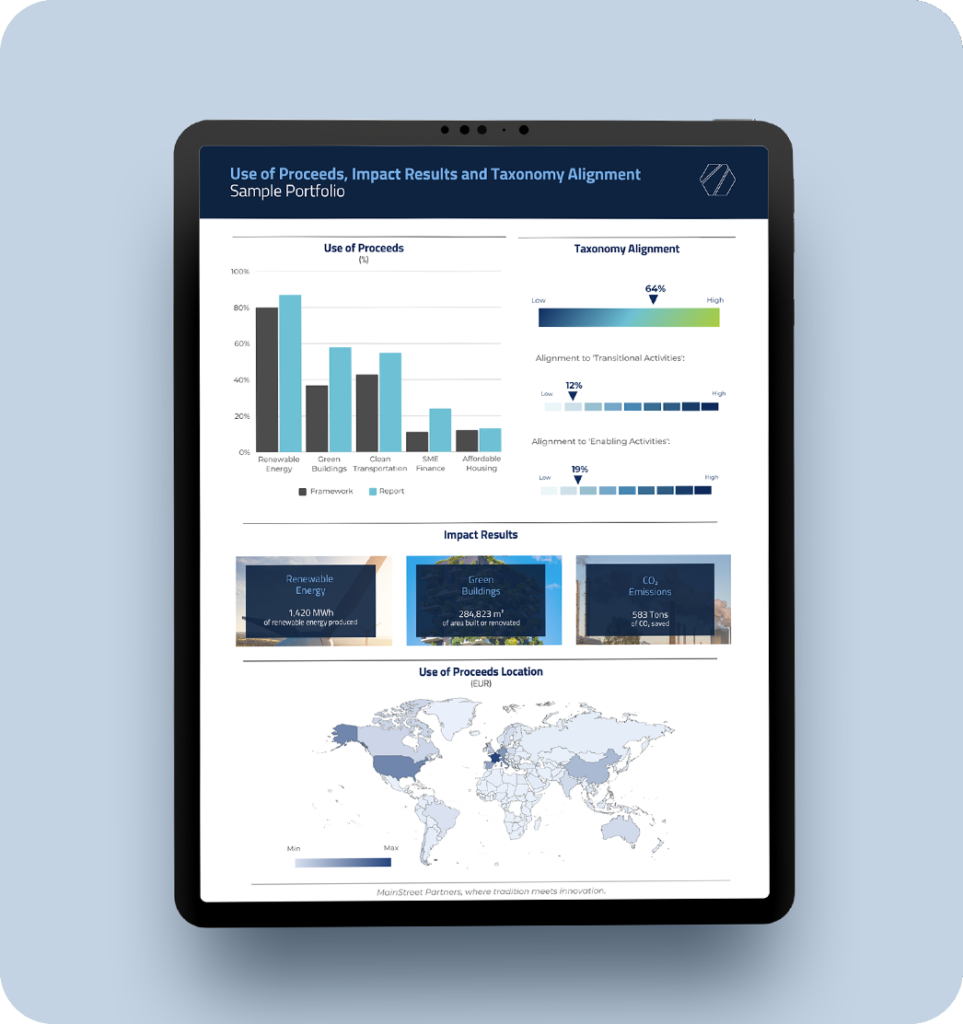 MainStreet Partners enabled access to our GSS Bond impact data, providing a comprehensive dataset for company-wide use.